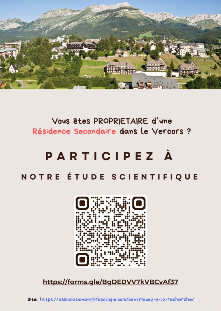 | Etude Résid@ns 2031 (lancement juillet 2024) « Etude qualitative sur la zone d’habitation tendue sur le Plateau du Vercors » – 1ère phase (juillet 2024): une étude qualitative de co-design auprès de différents groupes d’acteurs (20 répondants) a permis la compréhension fine des acteurs, des enjeux, des problématiques et des dispositifs existants. Nous avons catégorisé les résultats obtenus pour construire un questionnaire sur le comportement des propriétaires de résidences secondaires Public cible: propriétaires de résidences secondaires sur le Plateau du Vercors. – 2nde phase (décembre 2024): une étude statistique (distribution du questionnaire sur lequel nous récupérons des données et testons une série d’idées). Les données collectées sont anonymisées et traitées en vigueur de la réglementation RGPD (CNIL) par l’Association Française d’Anthropologie école de Grenoble. |